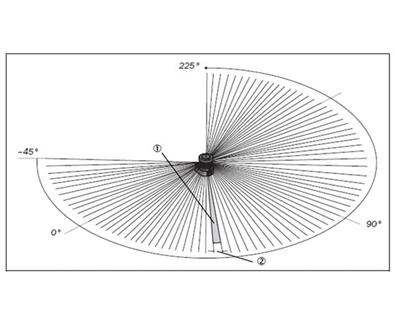 Inne i laserscanneren sitter et speil som roterer med jevn hastighet. Dette speilet avbøyer lyspulsene slik at de dekker en sektor – for eksempel 270 grader. På den måten kan objekter detekteres i hele det definerte beskyttelsesområdet. Skanningen starter gjerne ved -45 grader i forhold til baksiden av enheten.