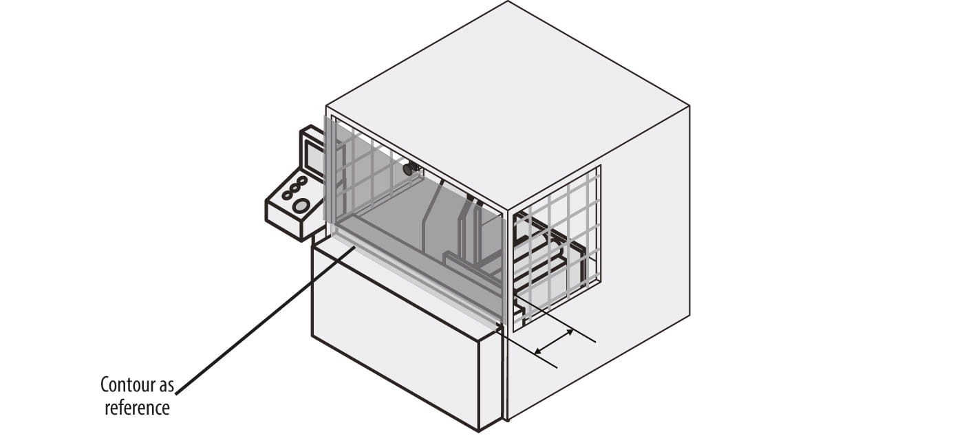 Laserscanneren kan monteres vertikalt slik at det opprettes en sikkerhetssone som forhindrer personer i å trenge inn i et farlig område. Ved vertikal overvåking må funksjonen "Contour as a Reference" alltid være aktivert. Denne funksjonen gjør at skanneren overvåker bestemte deler av sikkerhetssonen og reagerer dersom noe endrer seg. For eksempel vil skanneren utløse et signal dersom den flyttes, eller dersom det skjer endringer i omgivelsene innenfor det beskyttede området.