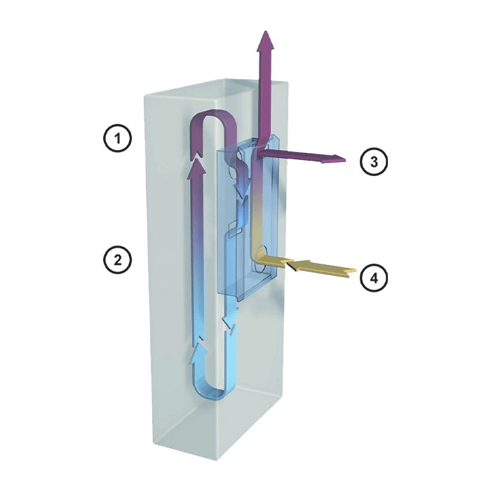 En sløyfe stenger av omgivelsesluften og avkjøler og sirkulerer ren luft inn i skapet.