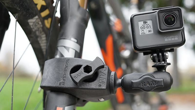 Den gummikledde aluminiumskulen gir både vibrasjonsdemping og trinnløs justering. Alle deler i et RAM-system må ha samme kulestørrelse (A, B, C, D eller E).