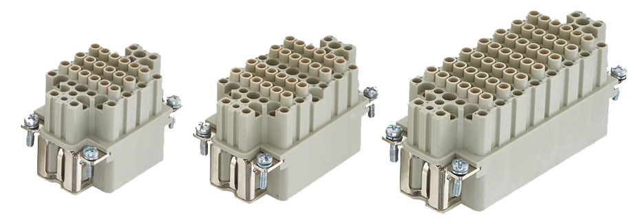 Denne serien av innsatser er egnet for installasjon med mange kontakter på et lite område. Den har fortsatt mulighet for høy signal/kraftoverføring og sikrere jordforbindelse gjennom tilkobling med crimp.