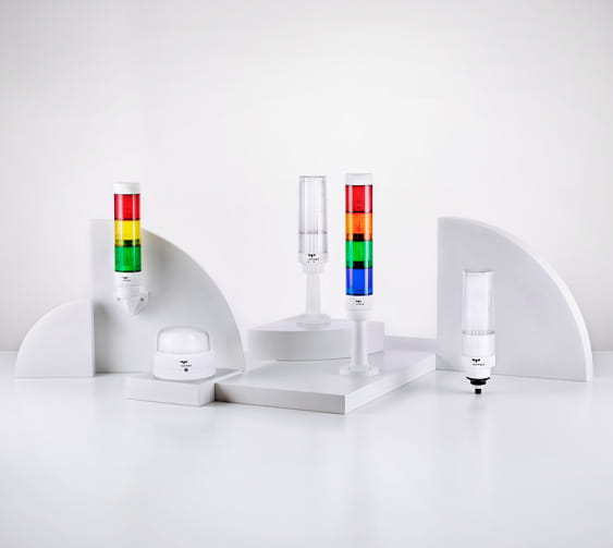 Det modulære lystårnet tilbyr nå enda mer fleksibilitet og et bredere sortiment med sine nye hvite baser og moduler. Det modulære konseptet gjør det enkelt å bytte ut moduler eller baser.