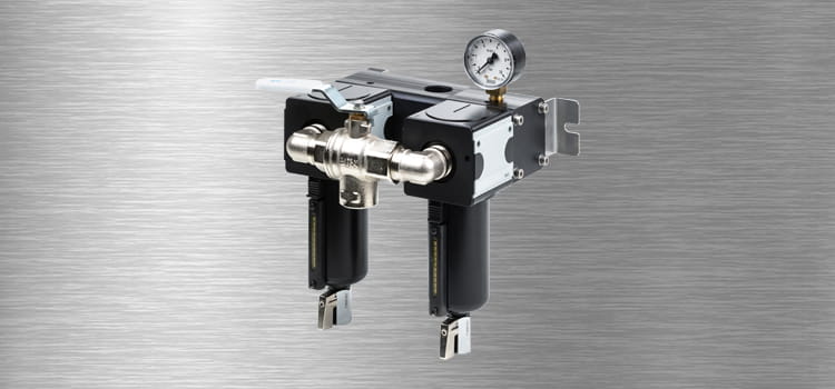 Med sin kompakte konstruksjon, parallellfiltere og en treveis kuleventil, er det enkelt å bytte filterelement uten å måtte stanse anlegget. Dette sikrer kontinuerlig og problemfri luftforsyning. SITEK-serien STS er dessuten enkel å installere og kan utstyres med et manometer eller en trykkbryter, som gir indikasjon på filterets forurensningsgrad under drift.