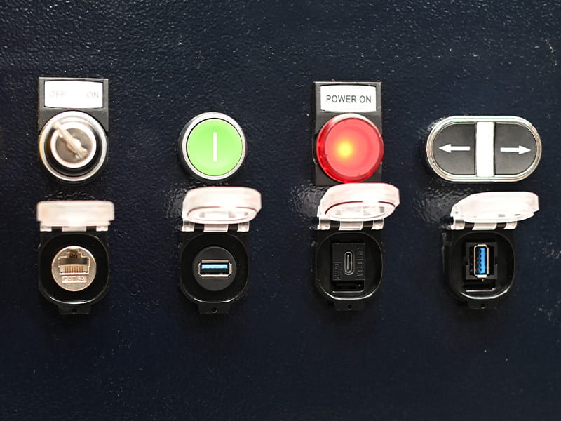 Felles for alle panelkontaktene er at de kombinerer høy brukervennlighet med robust konstruksjon. Med kapslingsgrader fra IP20 og helt opp til IP69K (med lukket lokk) kan de brukes selv i krevende miljøer uten å gå på kompromiss med påliteligheten.
