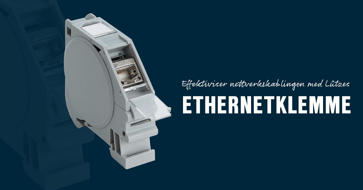 Med Lützes Ethernetklemme er det enkelt og tidsbesparende å tilkoble Ethernet- eller Profinetkabler fra felt til styreskap. Ethernetklemmen sparer opp til 30 % i tid ved installasjon og kommer også med inkludert merking, noe som gjør det enklere ved kabeltrekkingen. Det kompakte designet og den meget smale bredden på 18 mm (uten sidekåper) gjør at flere moduler kan plasseres ved siden av hverandre for å spare plass i din el-tavle.