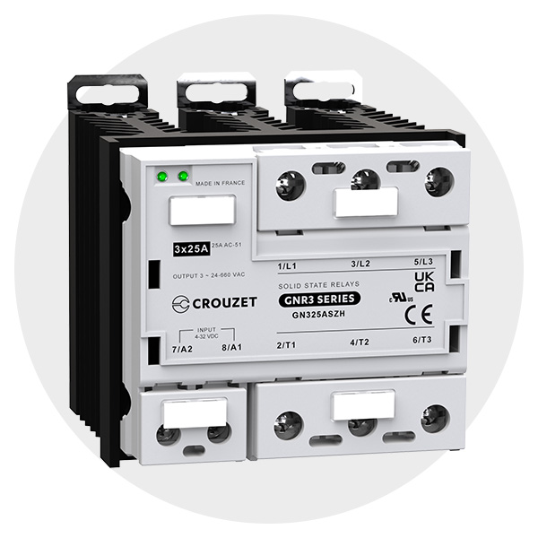 Crouzet erstatter nå de tidligere versjonene GNR25DCZ og GNR25ACZ. Disse 3-fase solid state-releene er for varmelaster opp til 25 A AC.