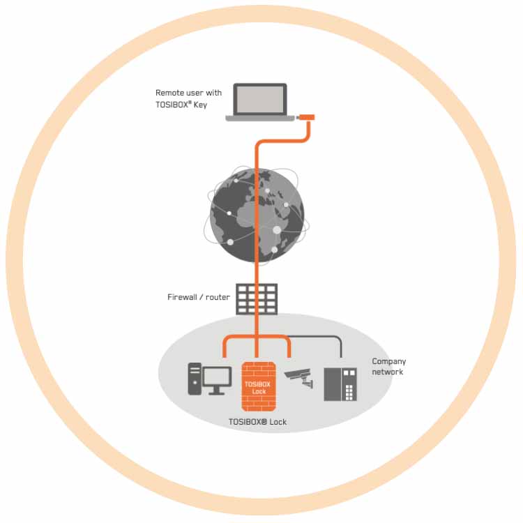 Låsen fungerer som en brannmur og du får tilgang til alle enheter som er koblet direkte til TOSIBOX®.