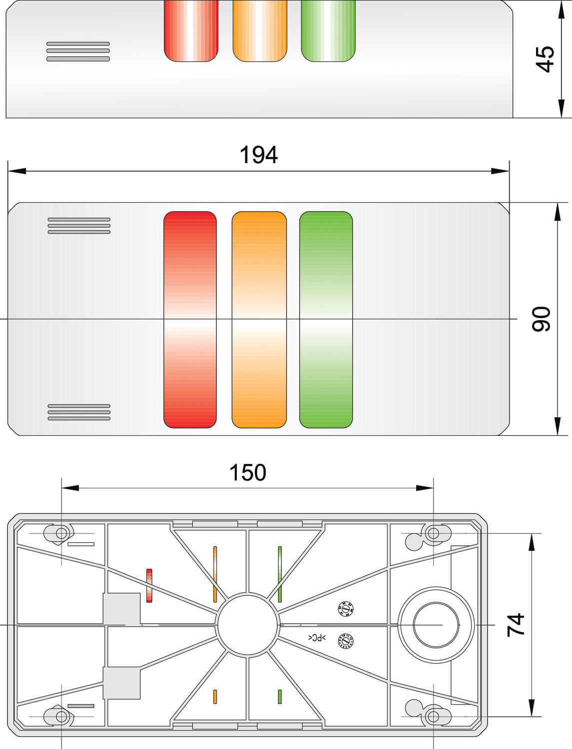 HD kompakt lystårn grå, 24 V AC/DC rød/orange/grønn