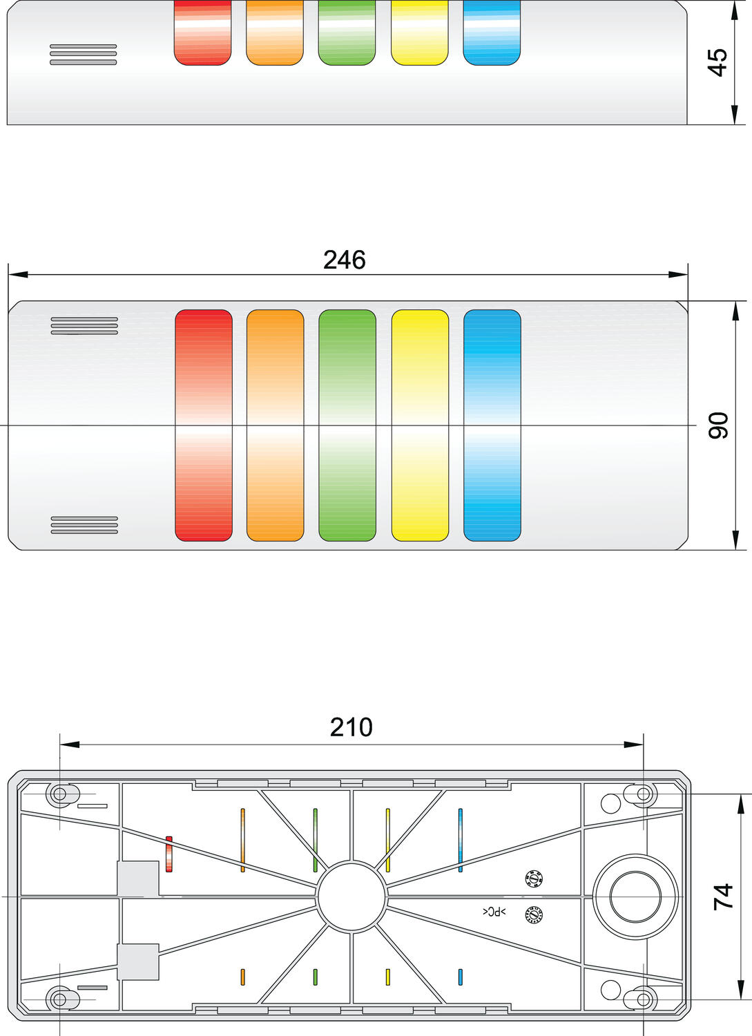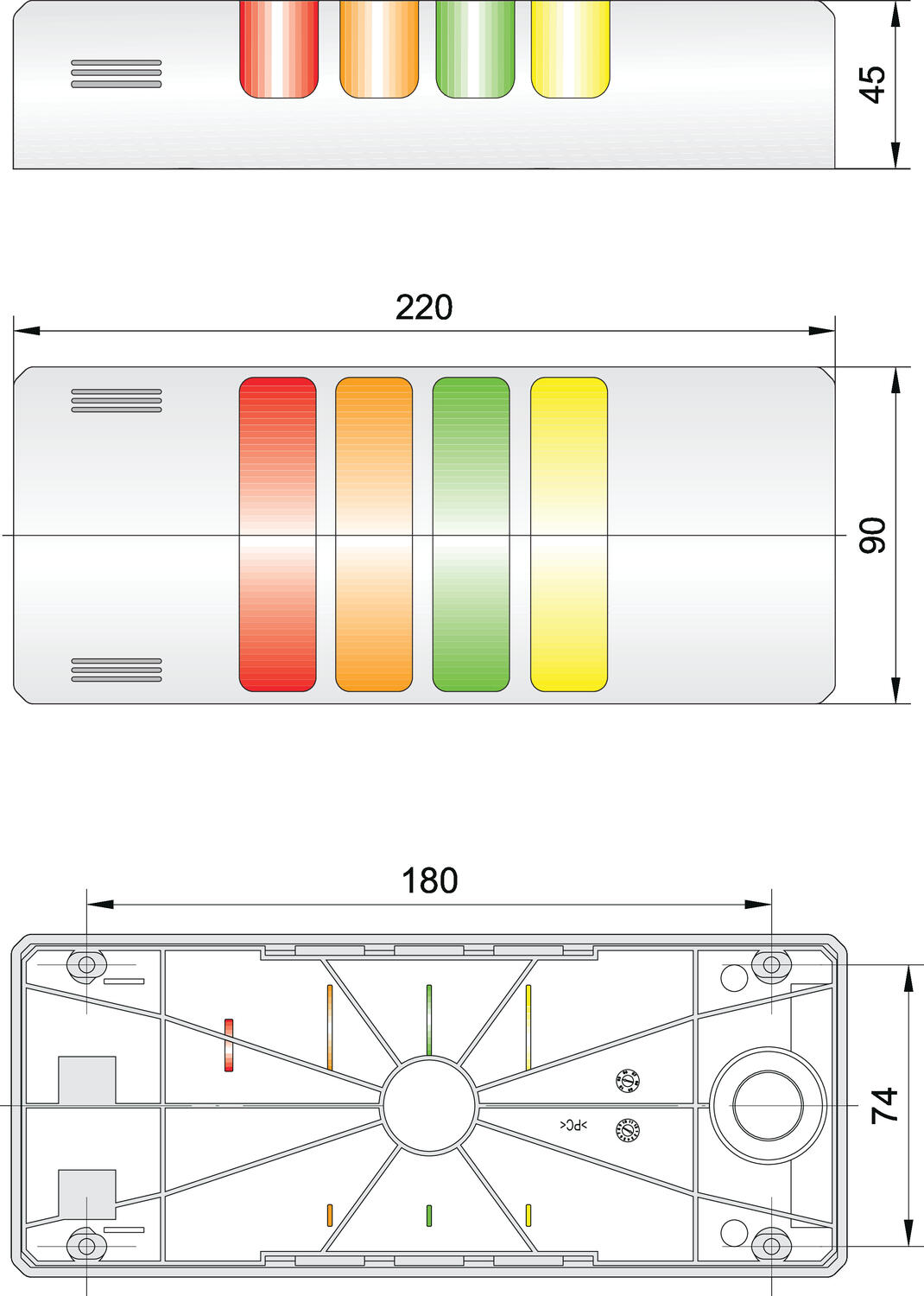 HD kompakt lystårn sort, 24V AC/DC rød/orange/grønn