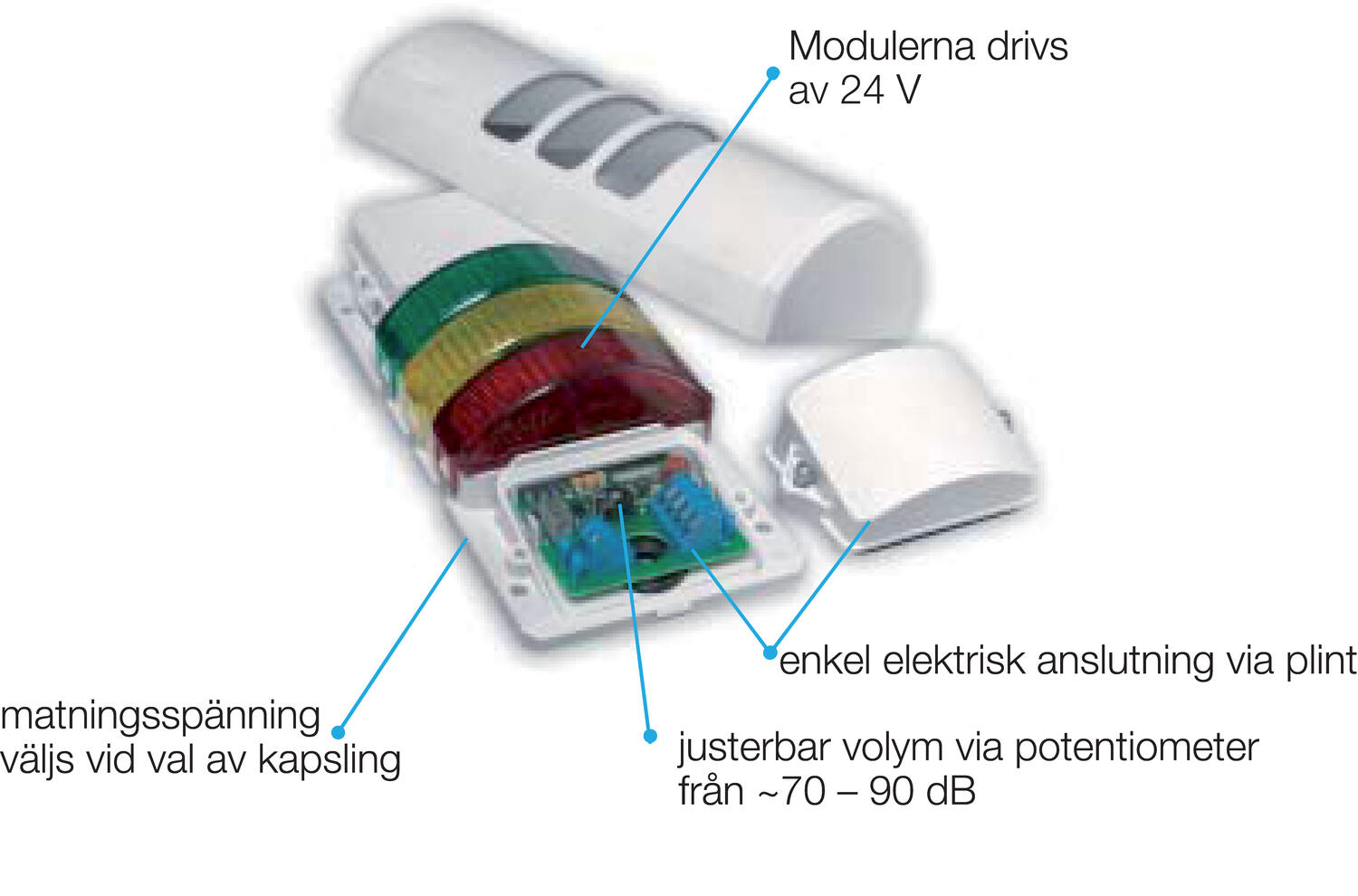 HD kompakt lystårn krom, 24V AC/DC rød/orange/grønn