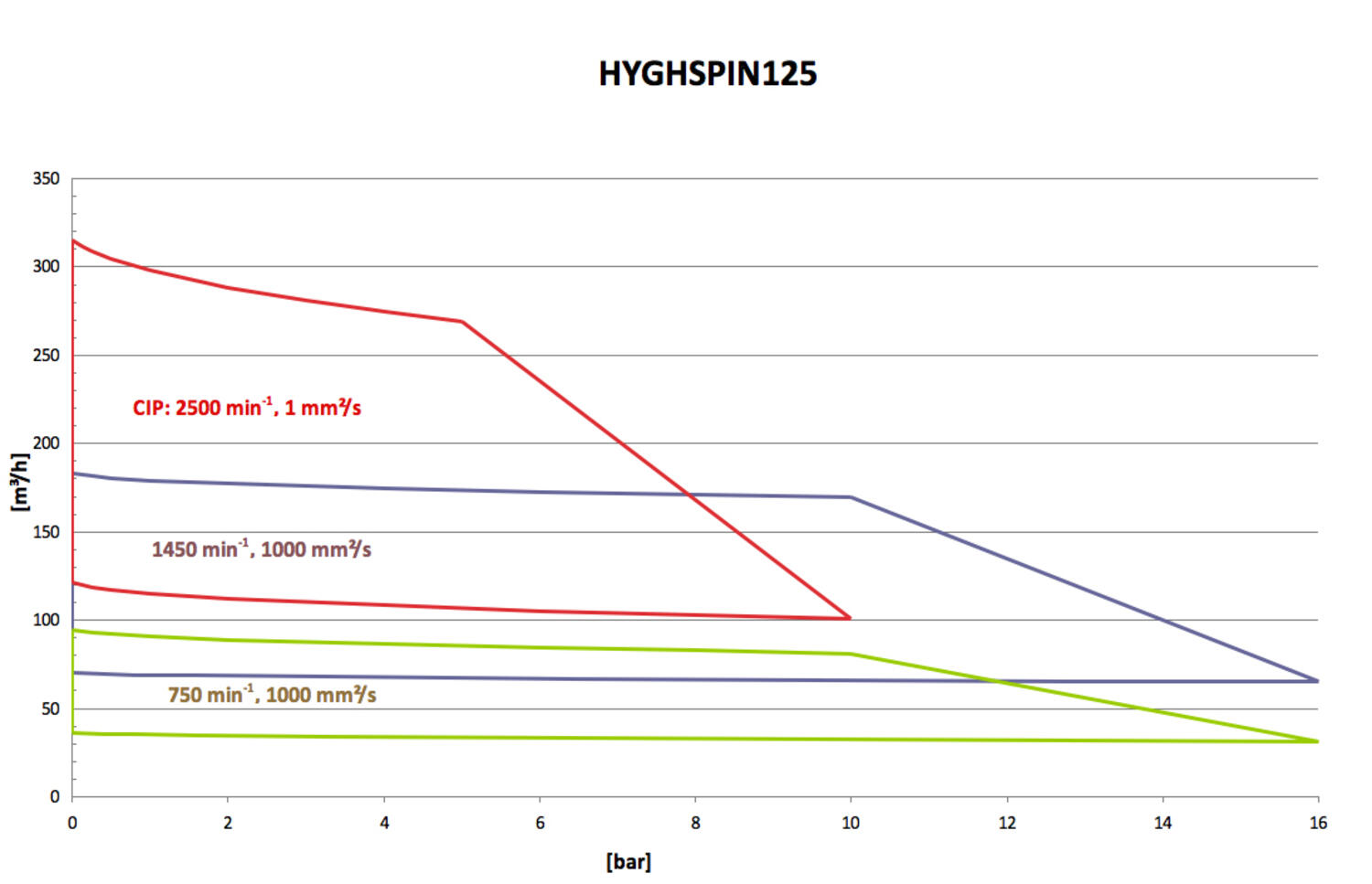 HYGHSPIN er tilgjengelig i kompakt utførelse i størrelse 50, 70 og 90 og med frie aksler i størrelser 70, 90 og 125. Pumpene kan gi opptil 35 bar trykk, avhengig av størrelse og design.