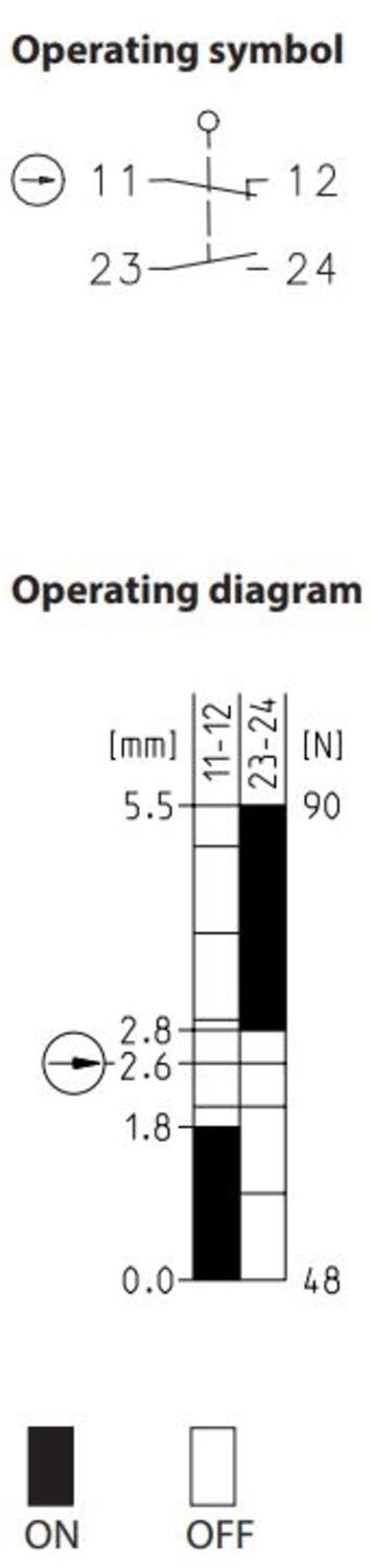| Kontakttype | Uten momentkontakt, 1 NO, 1 NC |