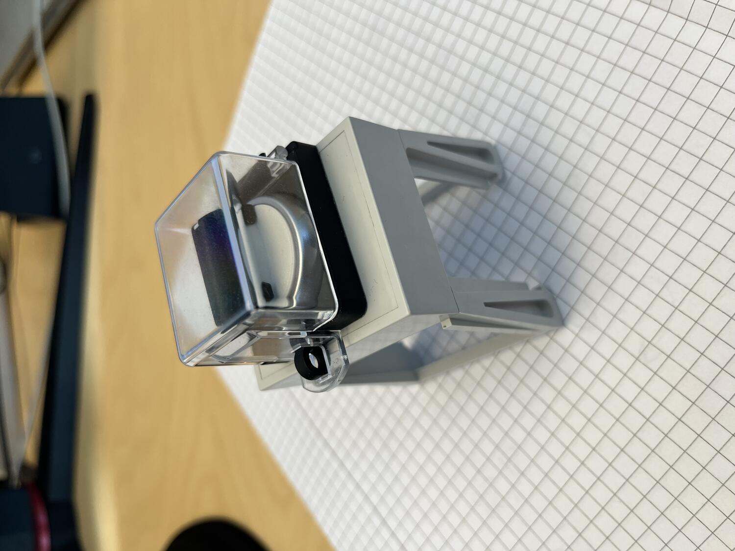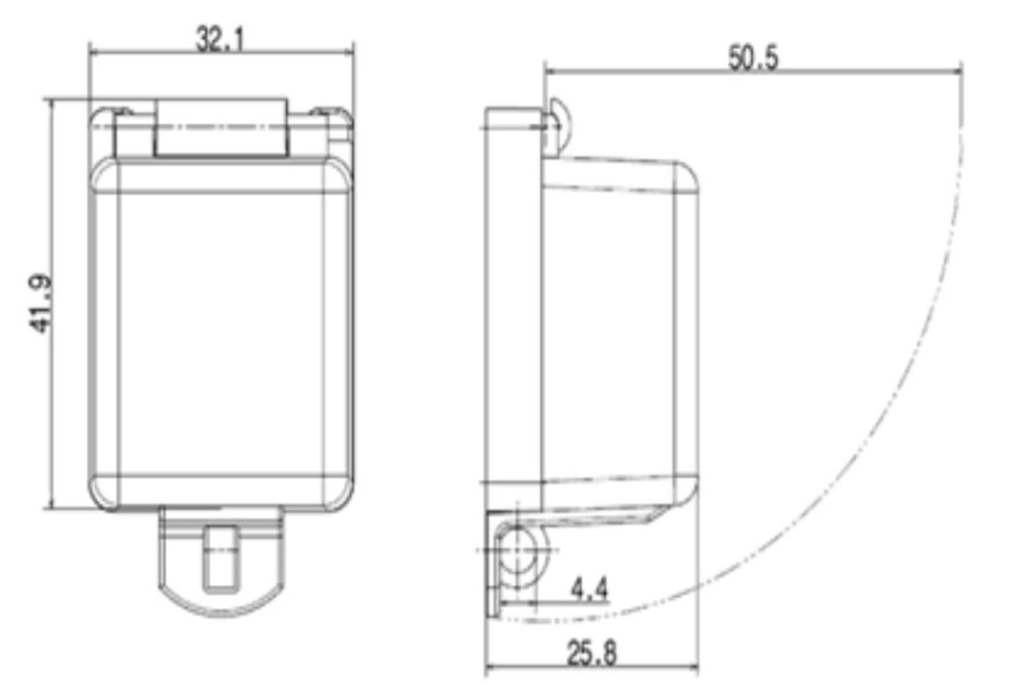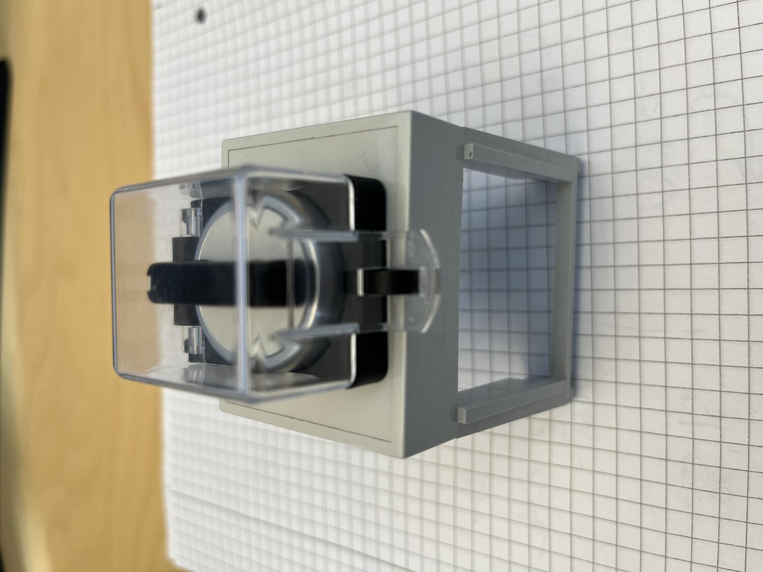 Denne kåpen er tatt frem for å forhindre utilsiktet aktivering og for å beskytte knappen. Man kan også låseog plombere lokket.